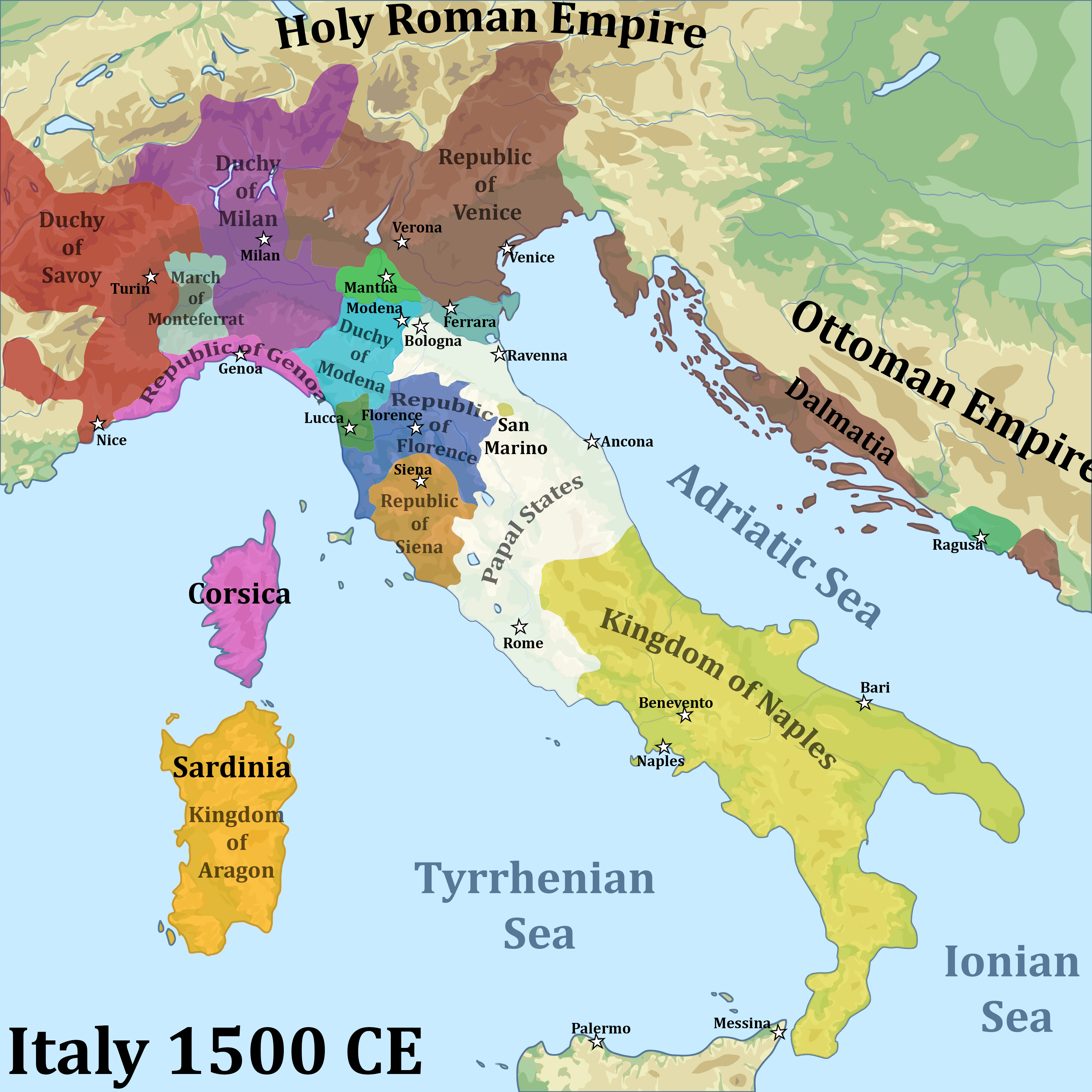 Map of Italy in 1453: History of the Early Renaissance | TimeMaps
